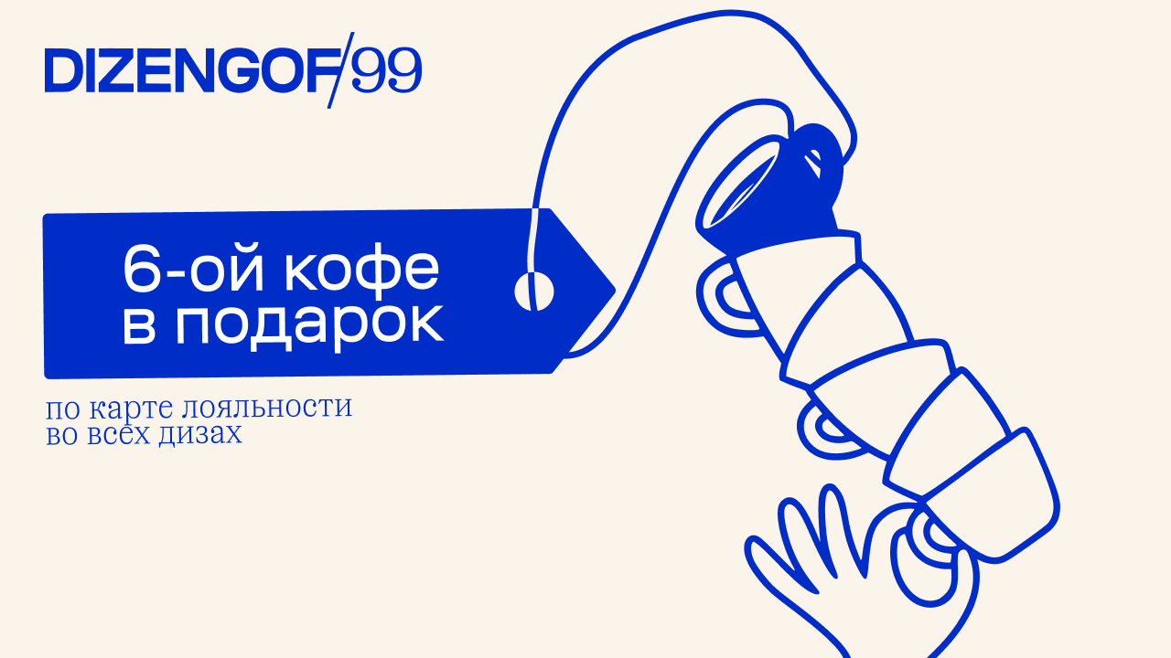 Приходи в Diz/99 за кофе, сканируй карту, копи дизены и помни, что каждая 6-ая чашка кофе - в подарок!